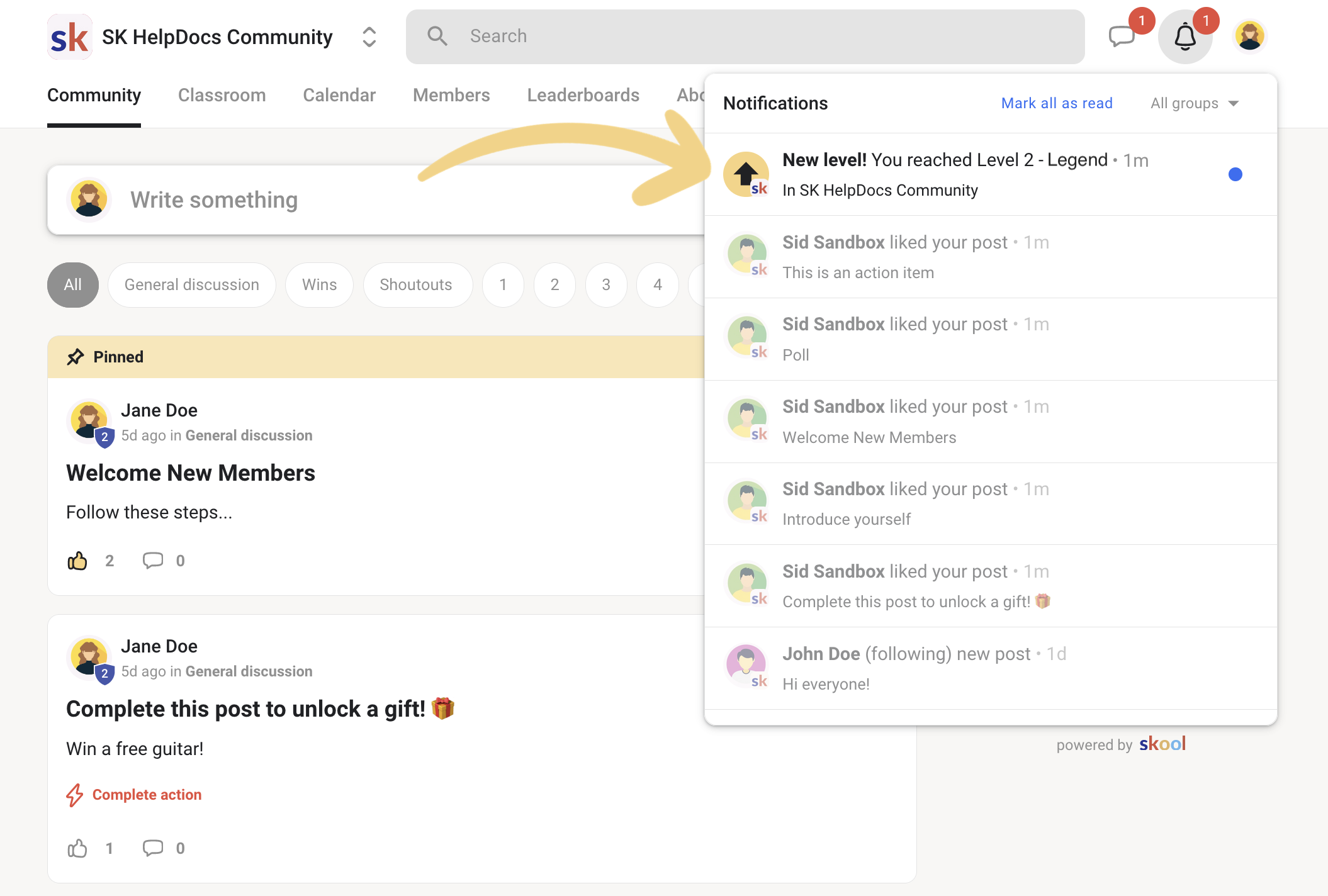 Every time a member likes a post or comments, they earn points. As they earn points, they "Level Up." As an admin, you can set "Rewards" for these levels. For example, when a member hits Level 3, Skool automatically unlocks a "Bonus Masterclass" for them.