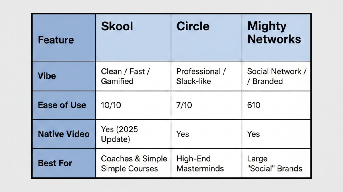 Skool vs. Circle vs. Mighty Networks